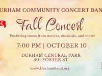 Durham Community Concert Band is one of the largest community bands in North Carolina, with over 100 musicians. The band has an upcoming concert, and it's free for everyone to enjoy. The band will be presenting their fall concert on October 10, 2025, at 7 p.m., at the Durham Central Park, 501 Foster Street, Durham, North Carolina. Please bring a chair or blanket. This concert will feature … [Read more...] about Fall Concert with Durham Community Concert Band Oct. 10