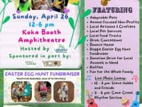 Unleashed's Annual Spring Fling is a fun, free event for families, including the canine family members. Parking is also free. It takes place Sunday, April 26, 2026 from 12 to 6 p.m., at Koka Booth Amphitheatre, 8003 Regency Parkway, Cary, North Carolina. Admission and parking are free. Many rescue groups will be there, along with lots of vendors. This event raises money for animals in … [Read more...] about Unleashed’s Spring Fling with doggie Easter Egg Hunt, music, vendors, more, on April 26