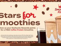 Smoothie King is taking high-protein coffee to the next level with a one-day, first-of-its-kind offer as Starbucks unveils its new protein drinks on the same day. The giveaway is a friendly reminder to those seeking a protein boost that Smoothie King has them covered. The smoothie shop is encouraging coffee drinkers to enjoy a seasonal favorite in a new, protein-forward way. This National … [Read more...] about Show Starbucks Rewards at Smoothie King for free 20-oz. smoothie on National Coffee Day