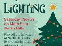 The 2025 Tree Lighting at North Hills will take place Saturday, November 22, 2025, 4 to 7 p.m., at Main Street at North Hills, Raleigh, North Carolina. This is a free event. More details on the Facebook event. 4 to 7 p.m.: 4 to 6 p.m.: The Tree Lighting Ceremony kicks off at 6, led by WRAL News Personalities. Santa will light the tree at 6:15. … [Read more...] about North Hills Tree Lighting on Nov 22