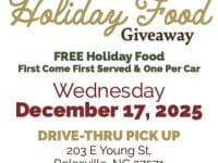 Town of Rolesville, North Carolina, is holding a Holiday Food Giveaway on Wednesday, December 17, 2025, from 11 a.m. to 1 p.m., or while supplies last, at 203 E Young Street, Rolesville, North Carolina. This will be a drive-thru distribution. One per car. Please make sure to follow all signs and directions. Look for updates on Town of Rolesville's Facebook page. Distribution is first come, … [Read more...] about Holiday Food Distribution in Rolesville Dec. 17
