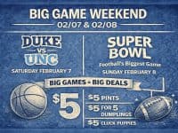 The Can Opener, at 205 South Gregson Street, Durham, North Carolina, has some special events for the Duke vs. UNC Men's Basketball game, the Super Bowl, and Valentine's Day. Big Game Weekend The Duke vs. UNC Men's Basketball game is on Saturday, February 7, 2026, at 6:30 p.m., and the Super Bowl is on Sunday, February 8, 2026, at 6:30 p.m. You can watch both of these games on the big screens, … [Read more...] about $5 Weekend Specials at The Can Opener in Durham for the Super Bowl