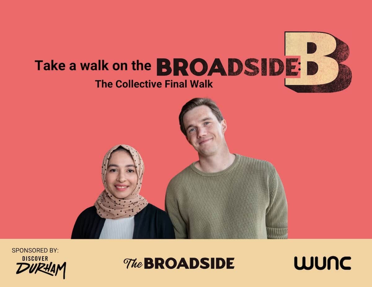Celebrate the conclusion of Take a Walk on the Broadside: Durham with a special collective walk led by Anisa Khalifa, host of The Broadside, and Charlie Shelton-Ormond, producer of the podcast.