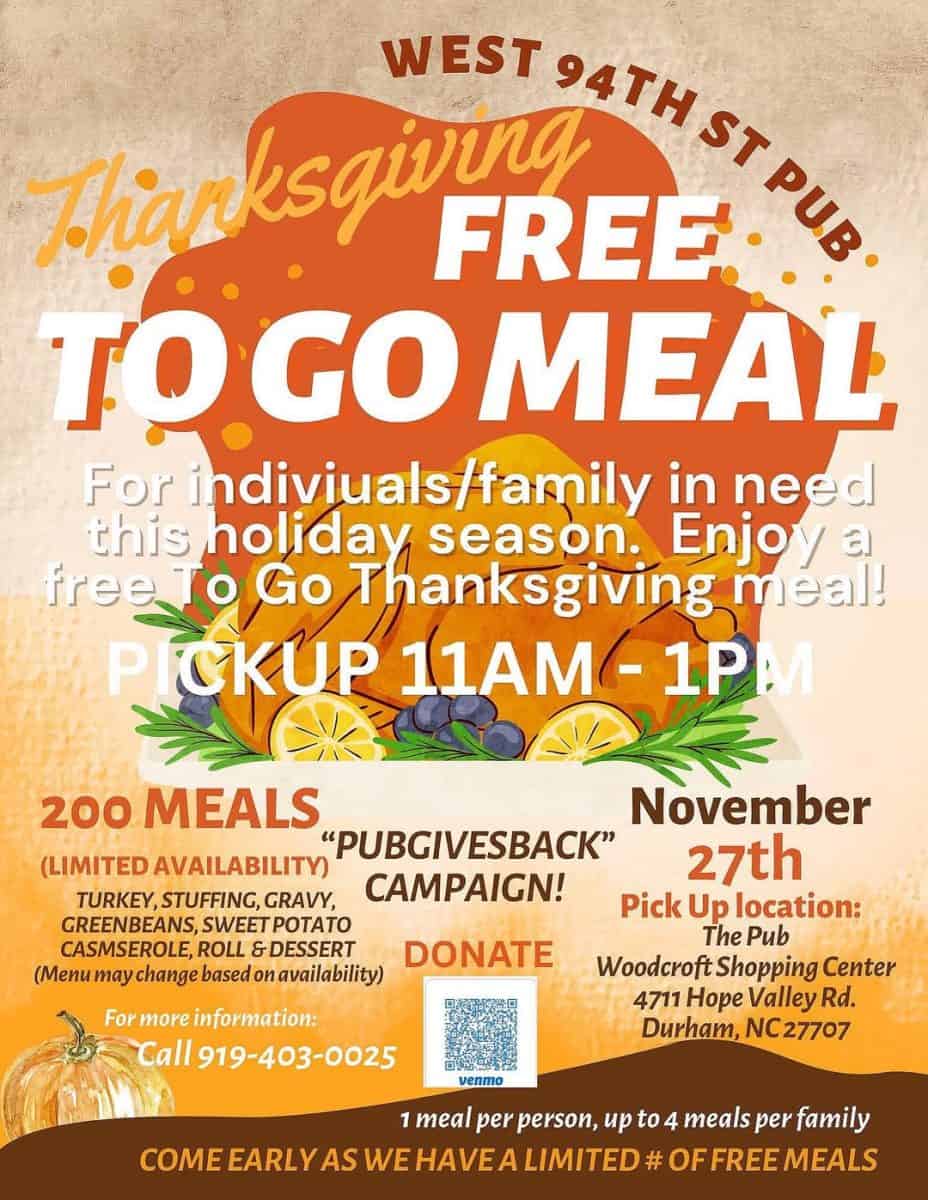 Thanksgiving Meal Giveaway at West 94th Street Pub