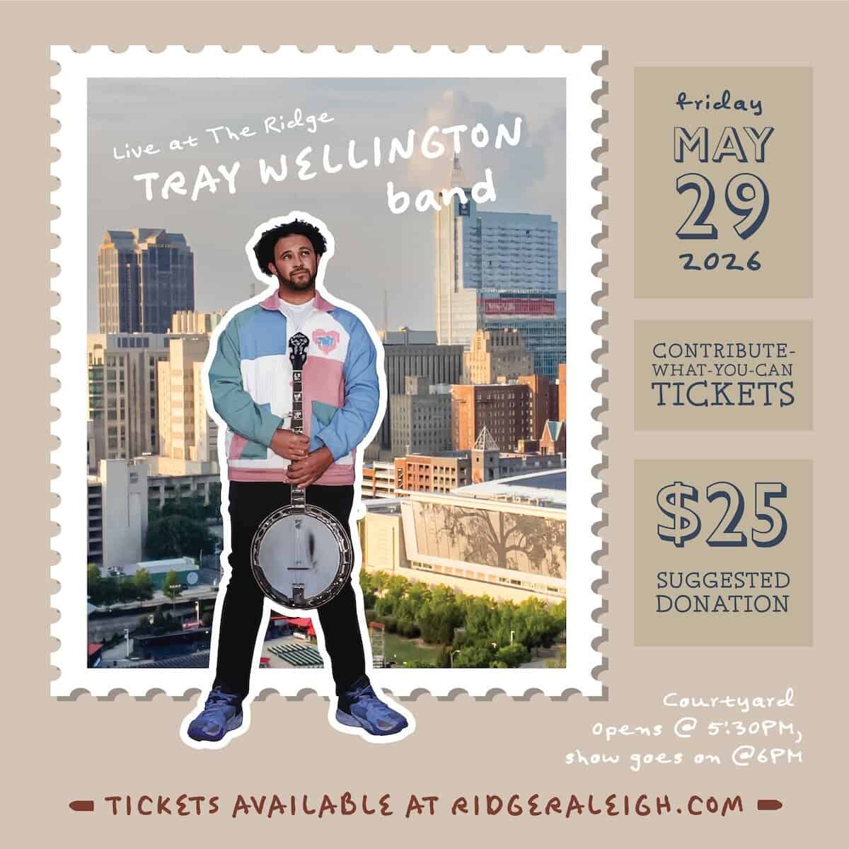 The Tray Wellington Band is performing at The Ridge, 2011 Ridge Road, Raleigh, North Carolina, on Friday, May 29, 2026, at 6 p.m.