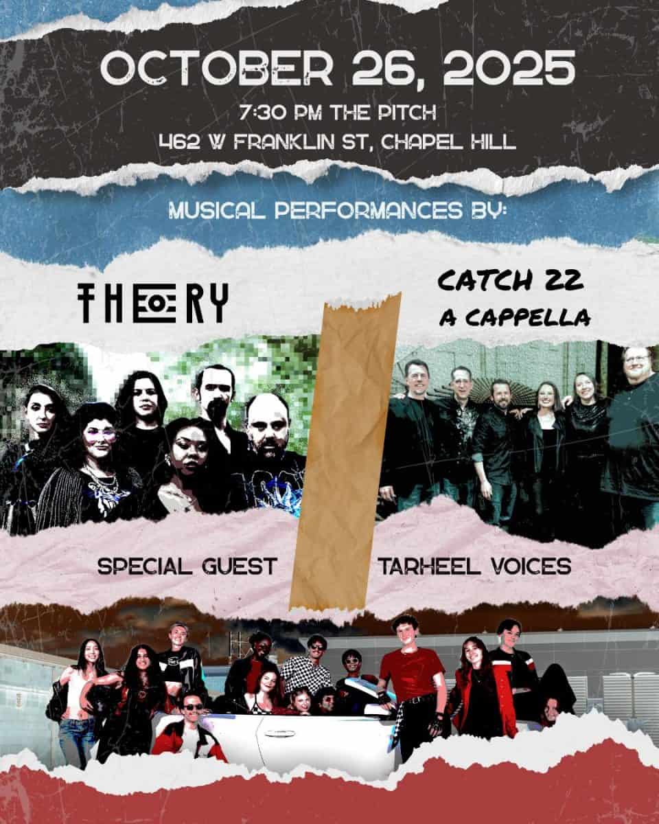 Also performing are Catch 22 and special guests from the University of North Carolina, Tar Heel Voices.