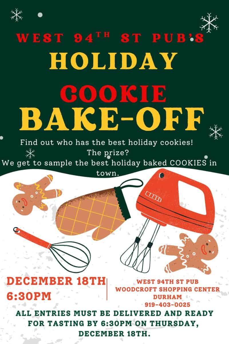 West 94th Street Pub, 4711 Hope Valley Road, #6C, Durham, North Carolina, has lots of holiday events coming up.